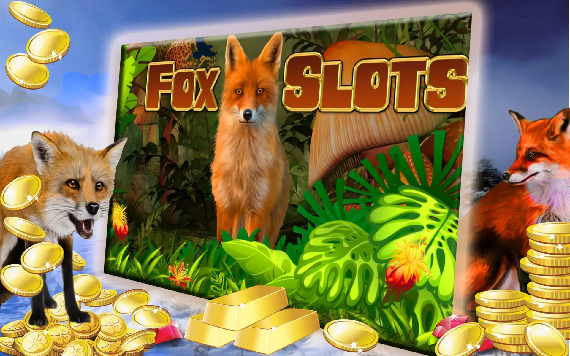 Фон наполнен динамикой — листья слегка колышутся, создавая эффект легкого ветерка, а персонажи словно взаимодействуют с игроком. Лис — не просто символ, а харизматичный герой с озорным взглядом и хитрой ухмылкой, который будто бы приглашает испытать удачу.