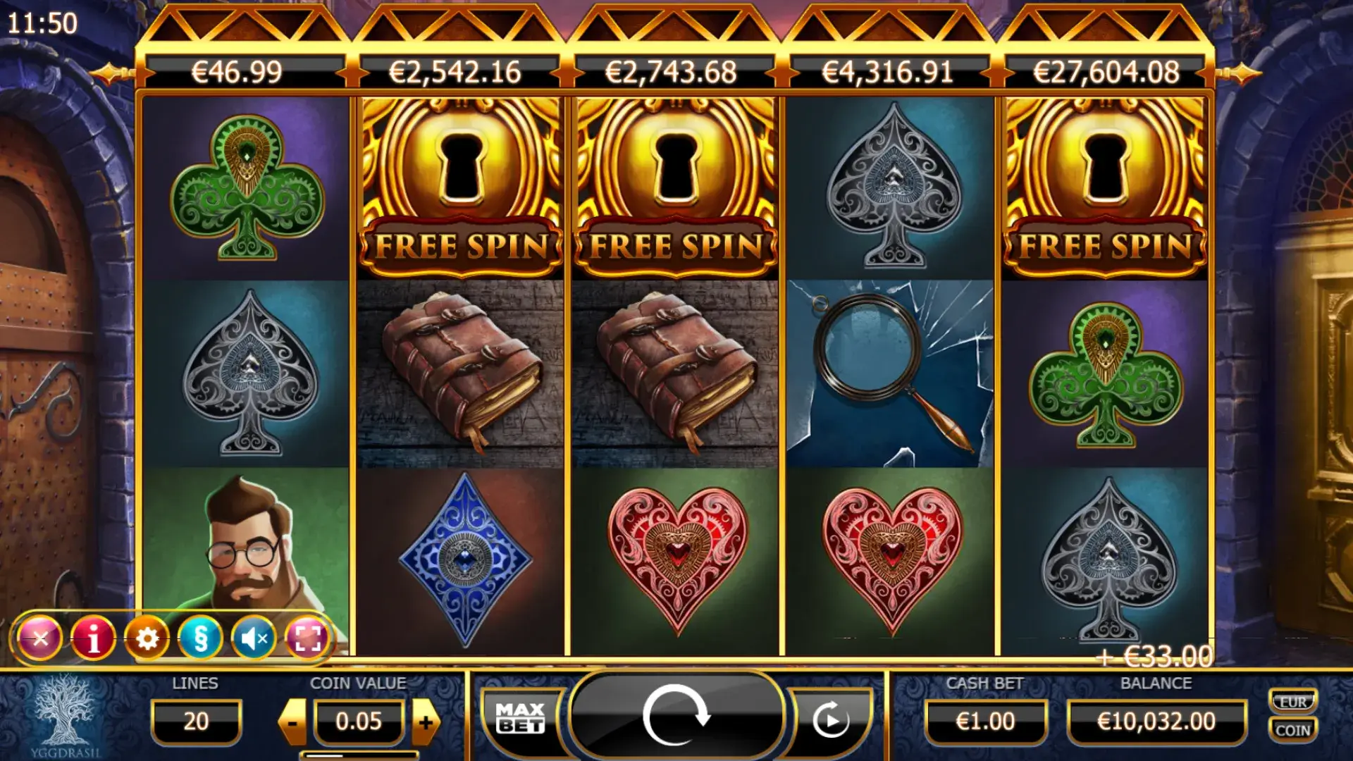 - गुणक: मुक्त स्पिन के दौरान सक्रिय ।